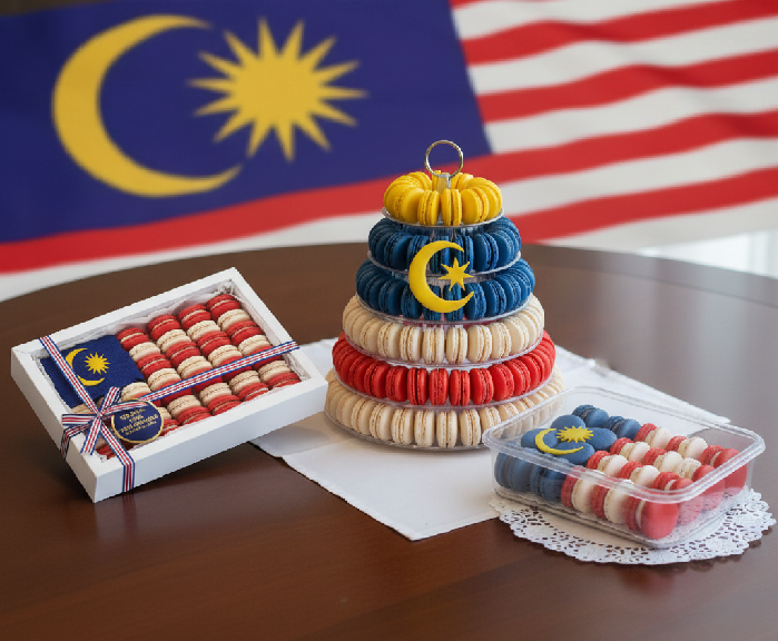 Sertakan pelekat atau tag hadiah eksklusif yang tertera ucapan ringkas seperti “Makaron Gemilang” atau “Semangat Malaysia” untuk melengkapkan mesej patriotik.